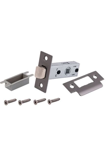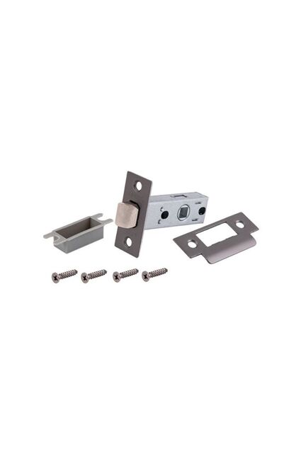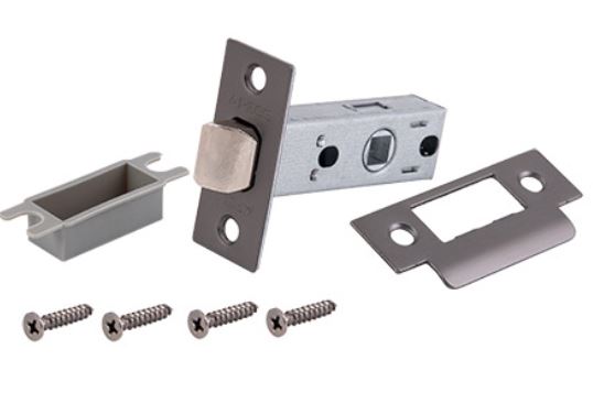 Классические защёлки с металлическим язычком без фиксации. Предназначены для межкомнатных дверей без запирания. Устанавливаются в МК деревянные двери совместно с дверными ручками. Врезная защёлка с металлическим язычком в цвете графит для межкомнатных дверей, надёжна, проста в установке, выдерживает частое использование.