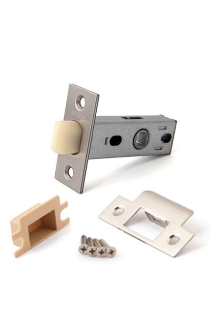 Врезная защёлка с пластиковым язычком: тихое закрытие, сатиновое покрытие, защита от коррозии. Лёгкая установка и универсальное применение.