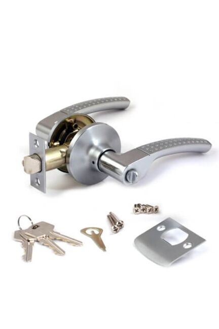Универсальная защёлка для межкомнатных дверей с ключом и фиксатором, матовый хром, плавный ход, надёжный механизм, лёгкая установка.