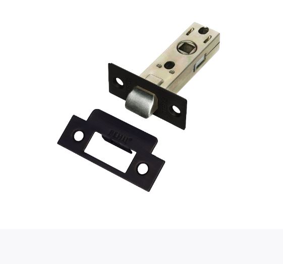 Врезная защелка без фиксации, пластиковый язычок, черный матовый, тихое закрытие, подходит для межкомнатных дверей и легкий монтаж.