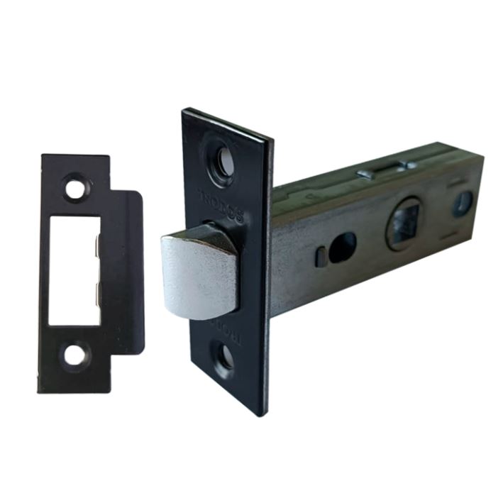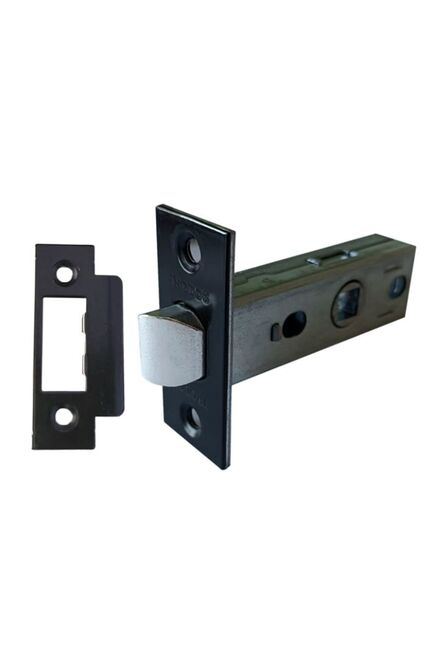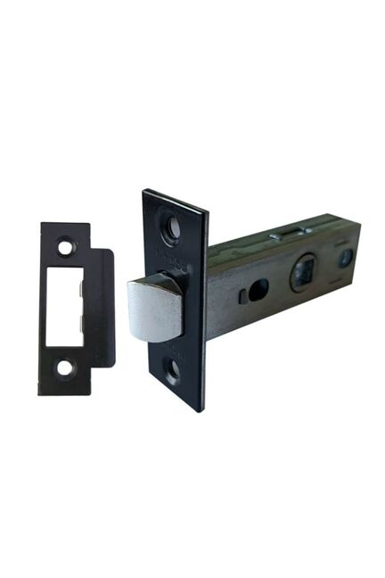 Современная металлическая защелка без фиксации, черный матовый, для надежной установки на межкомнатные двери, устойчива к износу и коррозии.