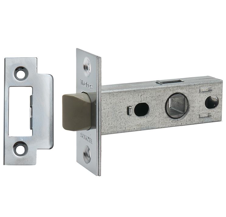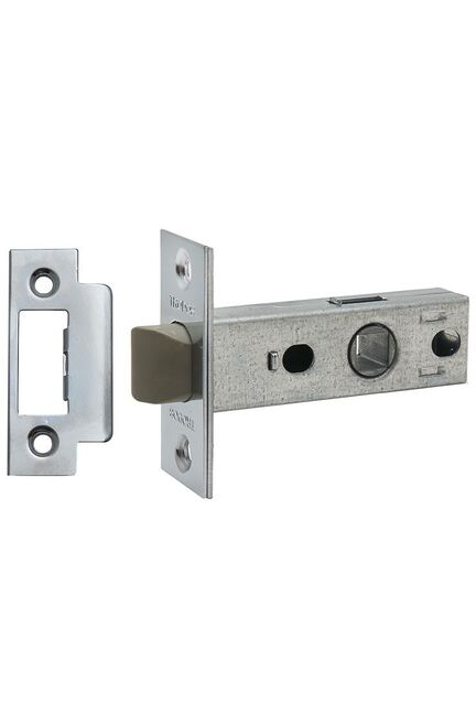 Врезная защелка без фиксации: универсальна, легкий монтаж, надежна, пластиковый корпус, хром, для межкомнатных дверей 35–45 мм.