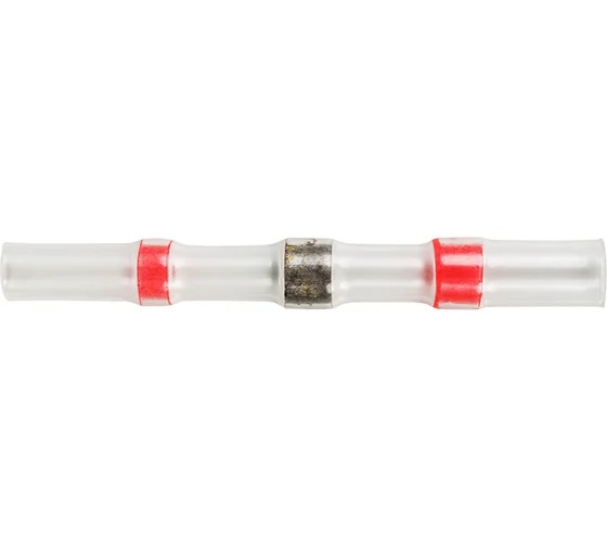 Соединитель термоусаживаемый под пайку предназначен для соединения медных многопроволочных проводов внахлест или встык методом термообработки. Для обеспечения визуального контроля процесса монтажа применяется прозрачный материал изоляции. В середине соединителя располагается гильза из низкотемпературного припоя оловянно-свинцовой группы. С обеих сторон на внутренней поверхности термоусаживаемой трубки располагаются клеевые полосы, обеспечивающие герметичность соединения после усадки.