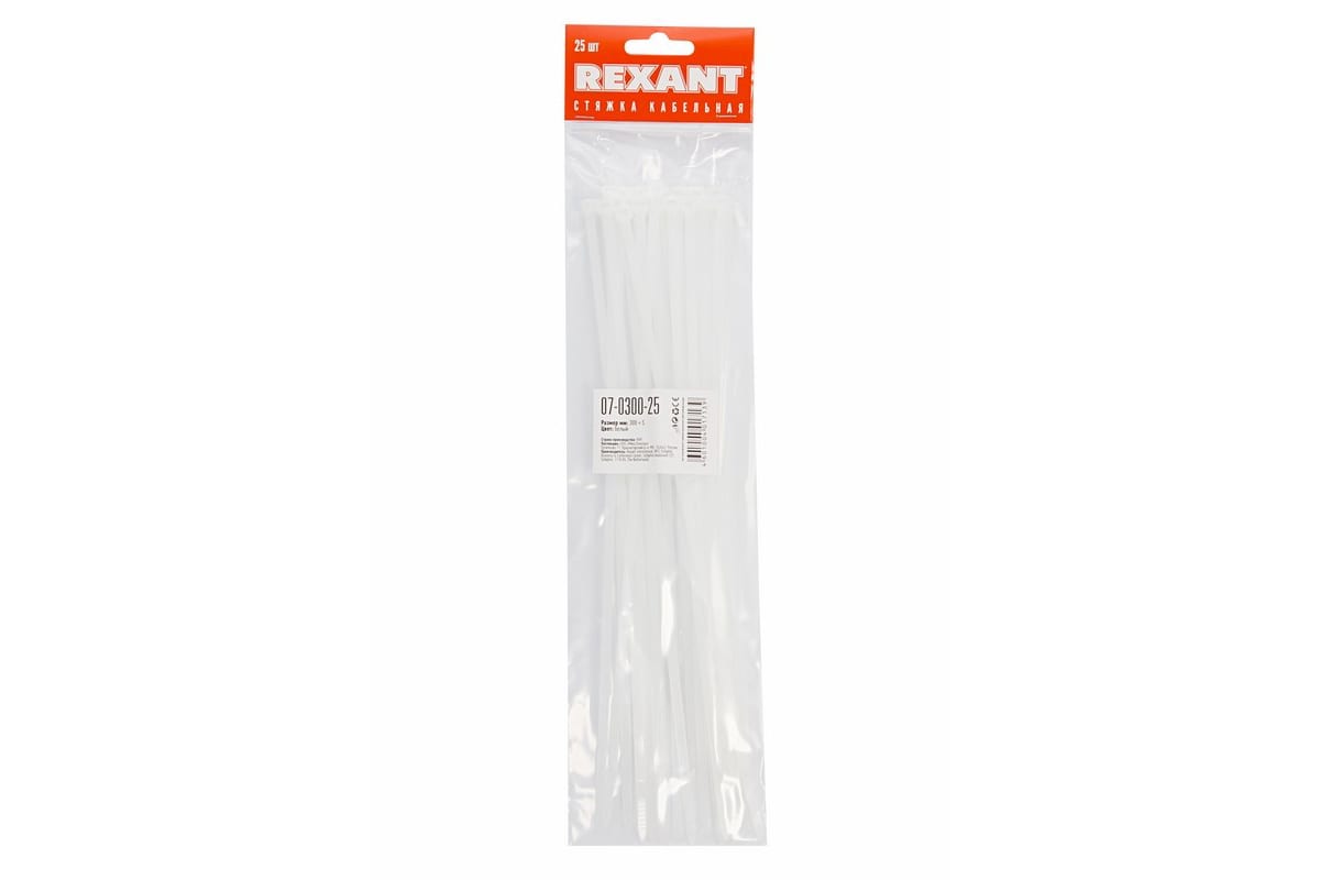 Нейлоновые хомуты 2,5×150 мм, белые, 25 шт, для надёжной фиксации кабелей и проводов. Прочность, простота, широкий диапазон применения.