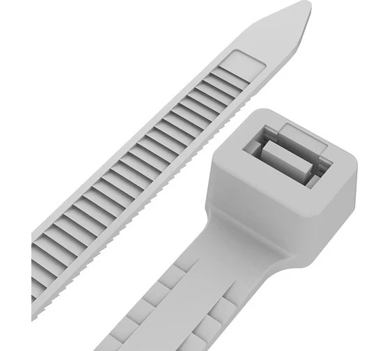 Прочные нейлоновые хомуты 3,6×200 мм с тройным замком для надёжного крепления и фиксации кабелей, упаковка 100 шт., белый цвет.