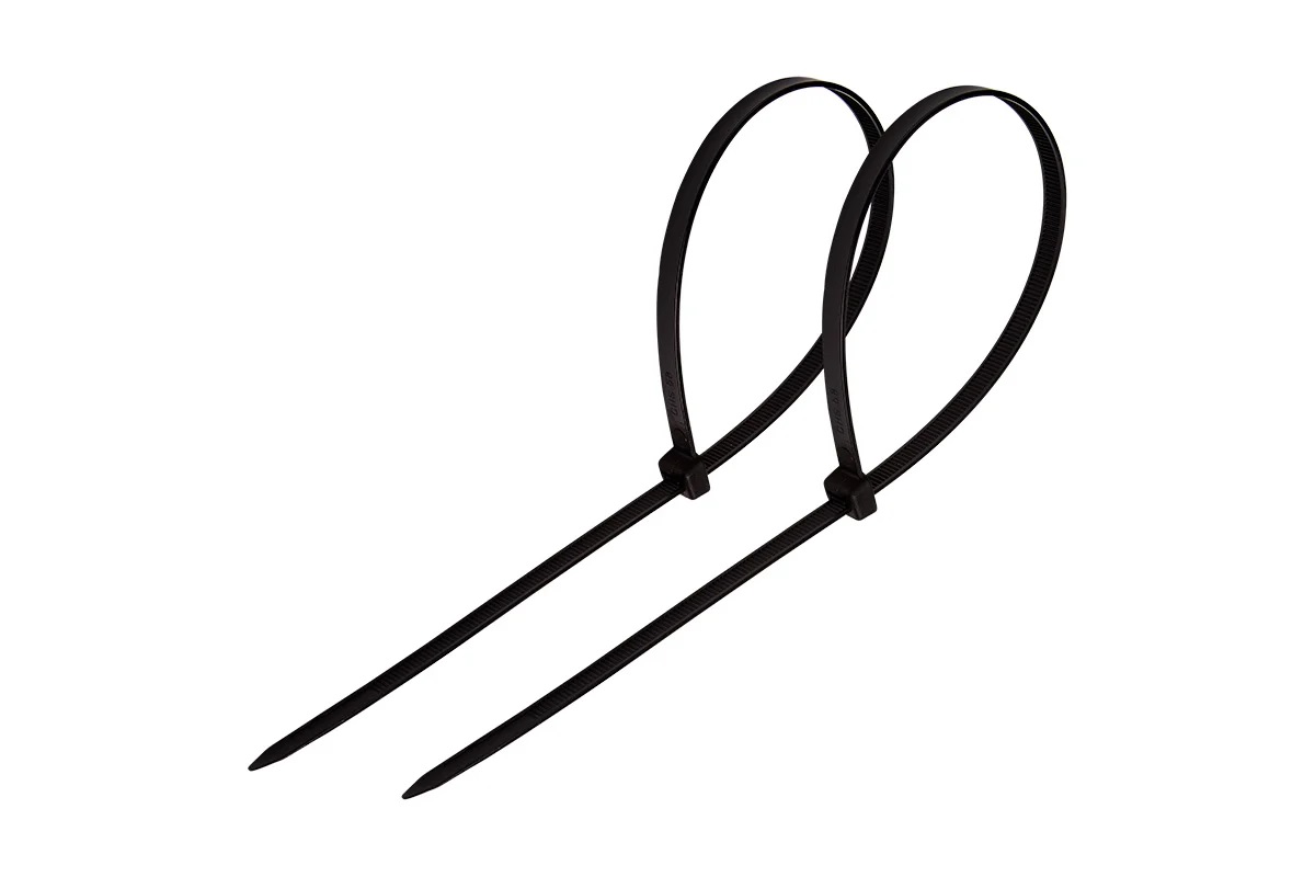 Нейлоновые хомуты 4,8×400 мм, черные, устойчивы к влаге и УФ, для надежной фиксации кабелей. В упаковке 100 шт. Для профессионального и бытового монтажа.