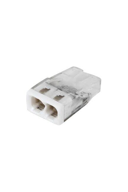 Двухпроводная клемма с пастой для быстрого и безопасного соединения медных проводов сечением 0,5–2,5 мм². В упаковке 6 штук.
