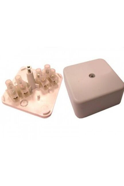 Накладная коробка 50×50/55×55 мм с контактной группой обеспечивает быстрый и безопасный монтаж соединений электропроводки.