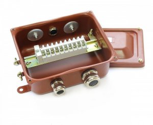 Коробка с наборными зажимами IP65, латунный ввод, защита от влаги и пыли, надежность для быстрых и безопасных электромонтажных работ.