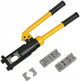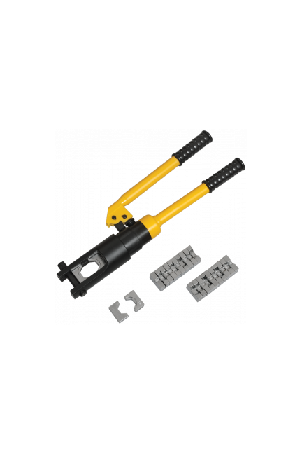 Гидравлические прессы позволяют создавать механические соединения типа кабельная жила-гильза или кабельная жила-наконечник с помощью механической опрессовки. Прессы снабжены сменными матрицами, предназначенными для различных сечений жил. Гидравлические прессы значительно облегчают процесс опрессовки так как требуют применения меньших усилий, чем механические прессы. Ручной пресс с усилием 10 тонн для лужёных наконечников до 240 мм², быстрая работа, компактность и автономность для надёжной опрессовки.