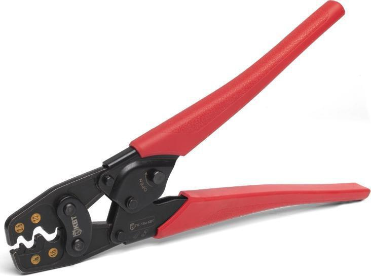 Инструмент для опрессовки изолированных и неизолированных наконечников, а также разъёмов. Пресс-клещи, оснащенные храповым механизмом, обеспечивают блокировку обратного хода и полный цикл опрессовки. Применяются для работ по обжимке многожильных кабелей и проводов. Степень опрессовки определяет механическую прочность и электрическое сопротивление контактного соединения. Инструмент используют для соединения наконечников на автомобильной проводке, для оконцевания кабеля перед подключением к электрощиту или потребителю и т.д. Обжимает наконечники 2,5–16 мм², эргономичные ручки, надёжность соединения, инструментальная сталь, быстрый обжим.
