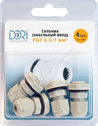 Кабельные сальники IP54 для кабелей 2,5–7 мм, надежная герметизация и защита от пыли и влаги, комплект 4 шт., удобны для монтажа.