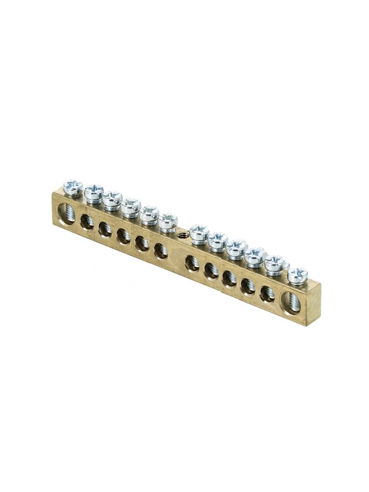 Нулевая шина 8х12 мм на 12 зажимов, монтаж по центру, для удобного подключения нулевых проводов в электрощитах любой конфигурации.