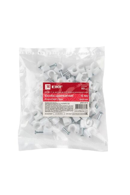 Круглая скоба 5 мм для надёжного крепления кабеля, устойчива к механическим нагрузкам. Прочная фиксация, комплект 50 шт.