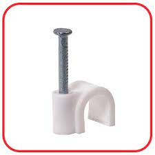 Надёжная фиксация кабеля диаметром до 7 мм, оцинкованный гвоздь, прочный пластик. Для монтажа проводов к стенам. Упаковка 100 шт.