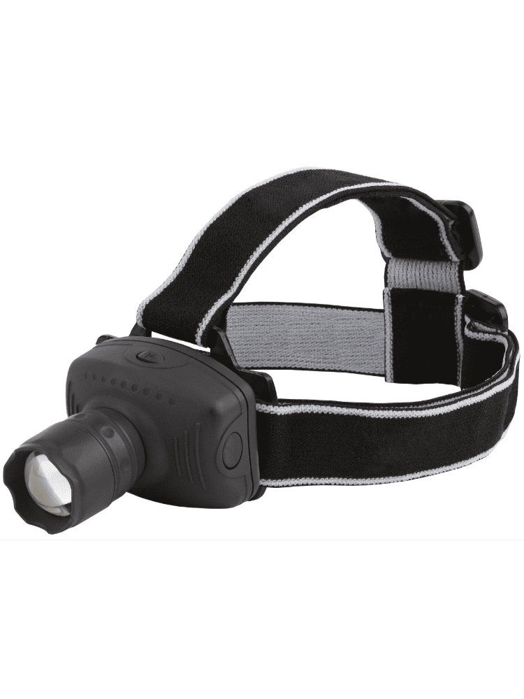 Яркий налобный фонарь с тремя режимами работы, защитой от влаги и питанием от батареек AAA — идеальное решение для стройки и монтажа.