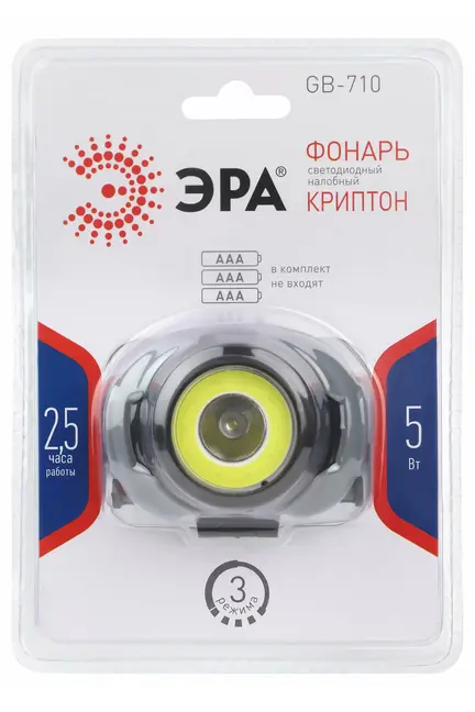 Фонарь налобный GB-710, СОВ 5Вт, бат. 3хААА, 3реж., ЭРА в Комсомольск-на-Амуре