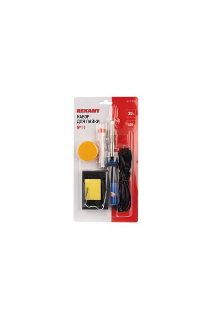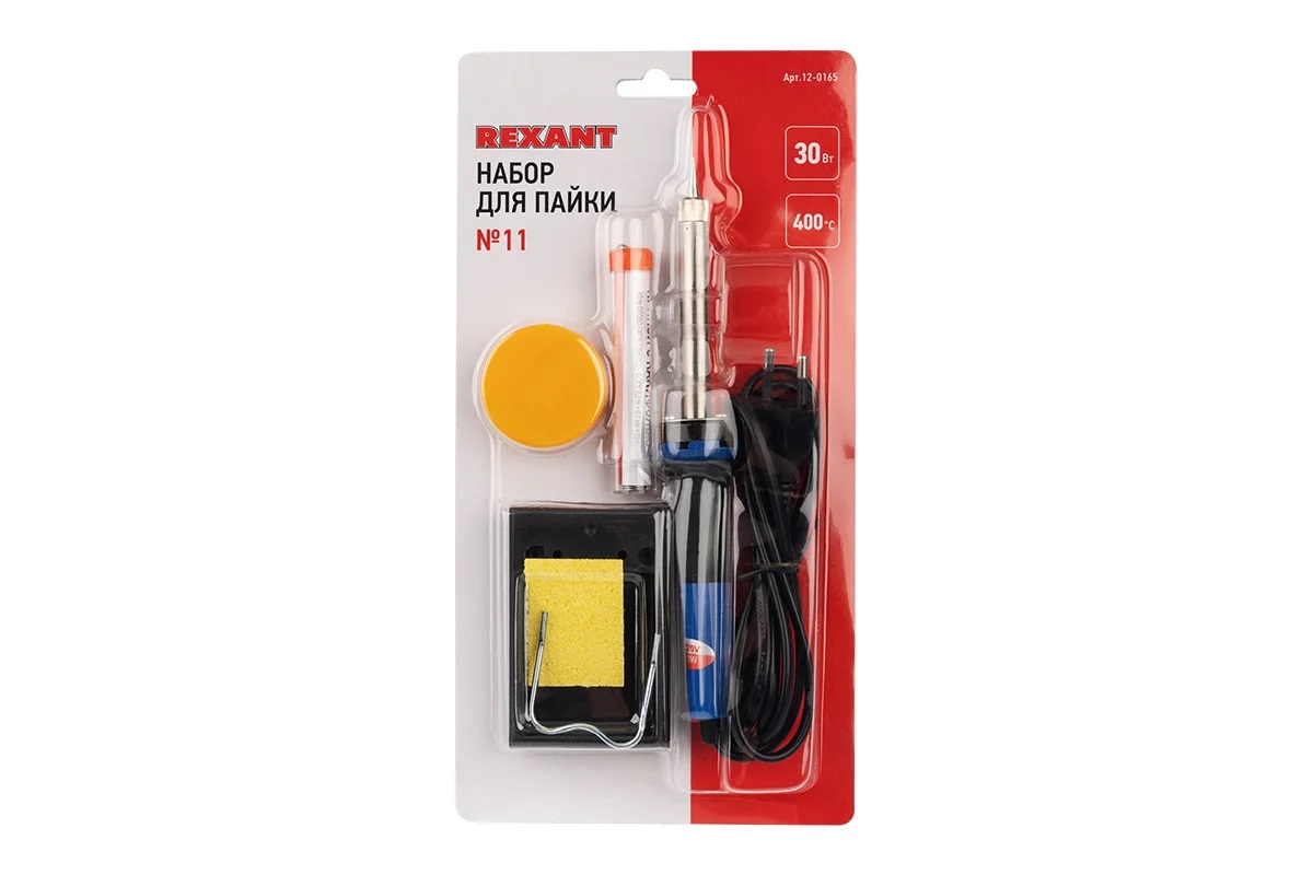Набор для пайки REXANT №11 (паяльник 30Вт, подставка, губка для удаления припоя, канифоль, припой)