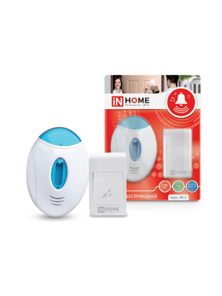 Звонок беспроводной ЗБ-3 32 мелодии 120м с подсветкой цифр. кодир. с кнопкой БЕЛО-ГОЛУБОЙ IN HOME в Комсомольск-на-Амуре