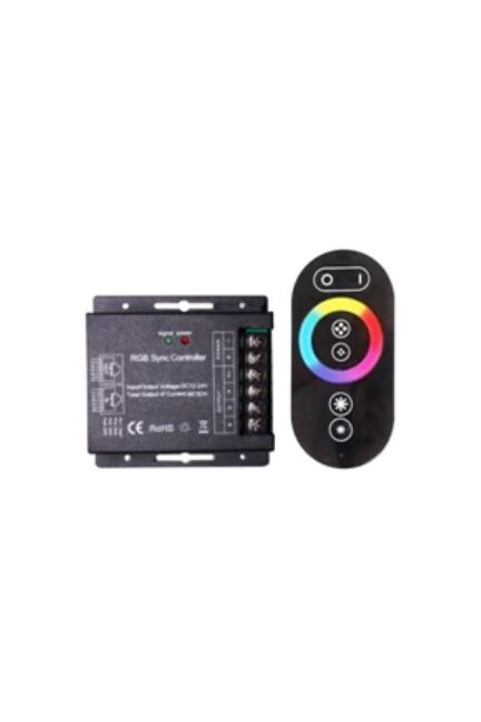 Сенсорный пульт управления RGB+CCT лентами на 3 зоны до 480 Вт, плавная настройка цвета и яркости, радиус действия до 30 м, удобство монтажа.