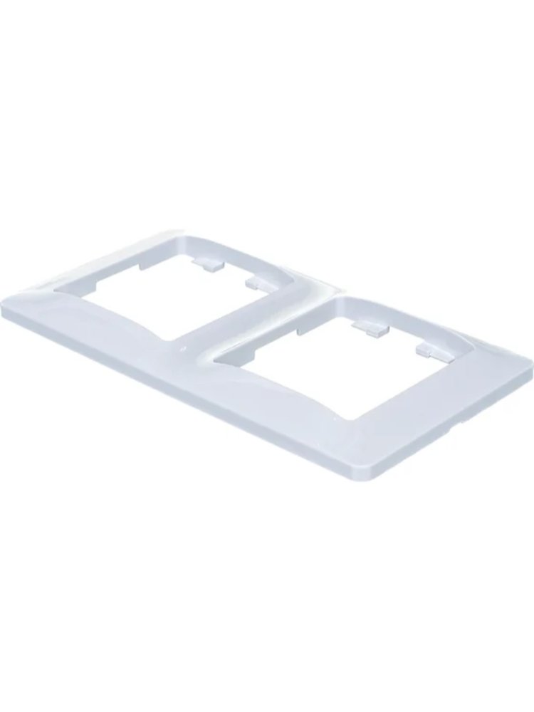 2-постовая горизонтальная рамка, белый цвет, ударопрочный пластик, легкий монтаж, современный вид для розеток и выключателей в любом интерьере.