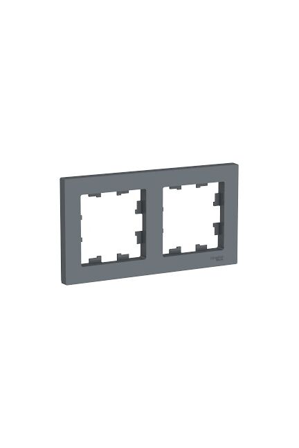 Двойная рамка для розеток и выключателей, стильное грифельное исполнение, простой монтаж, подходит для разных механизмов и современных интерьеров.