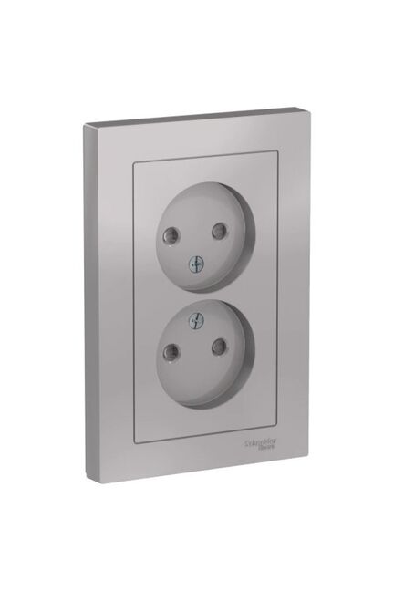 Розетка 2-постовая без з/к со шторками 16А моноблок, алюминий AtlasDesign SE в Комсомольск-на-Амуре