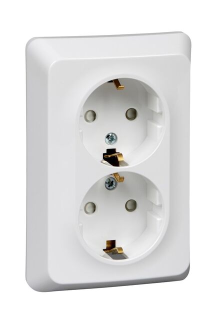 Розетка 2-постовая О/У с з/к со шторками 16А, белая Этюд SE в Комсомольск-на-Амуре
