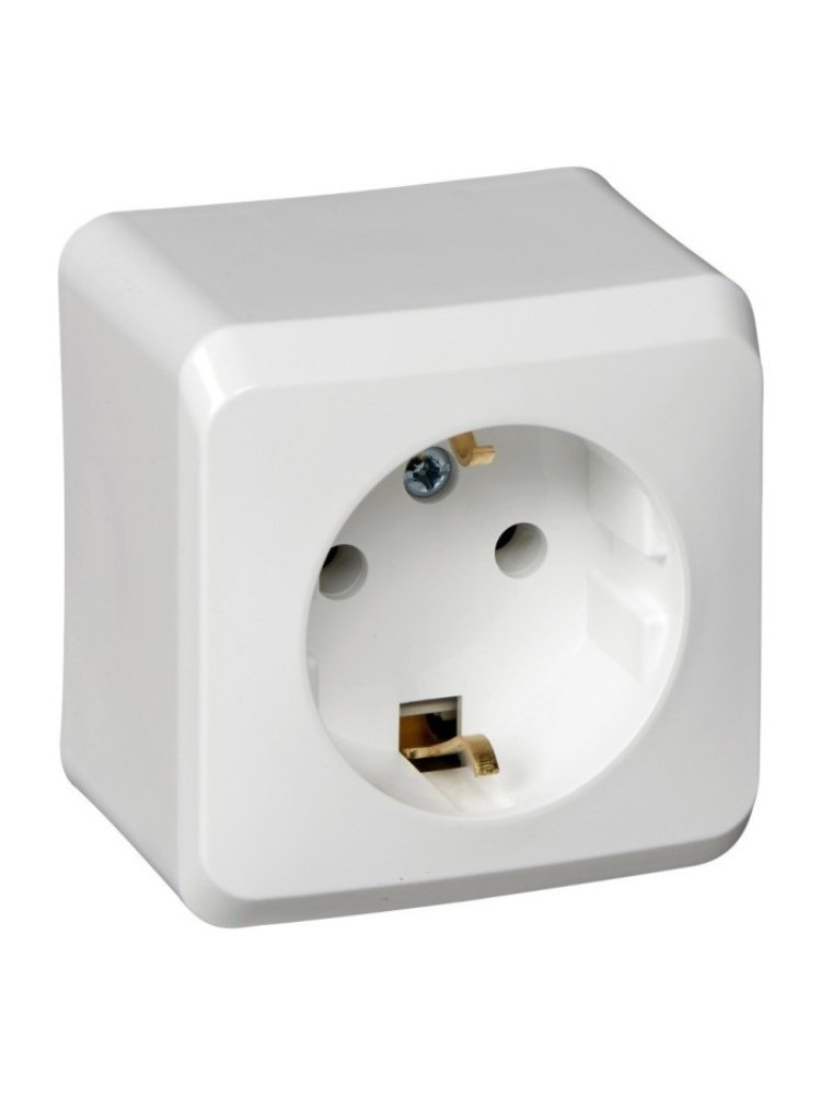 Накладная розетка 16А с заземлением подходит для быстрых монтажных работ и безопасного подключения мощных электроприборов дома и на объекте.