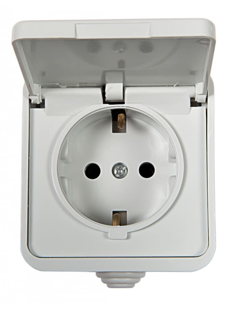 Влагозащищённая розетка IP44 с крышкой и заземлением: безопасное подключение электроприборов во влажных помещениях, на улице, в гараже или мастерской.
