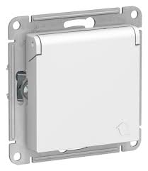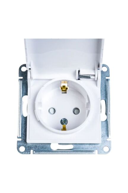 Розетка 1-постовая с з/к со шторками с крышкой 16А механизм, белая AtlasDesign SE