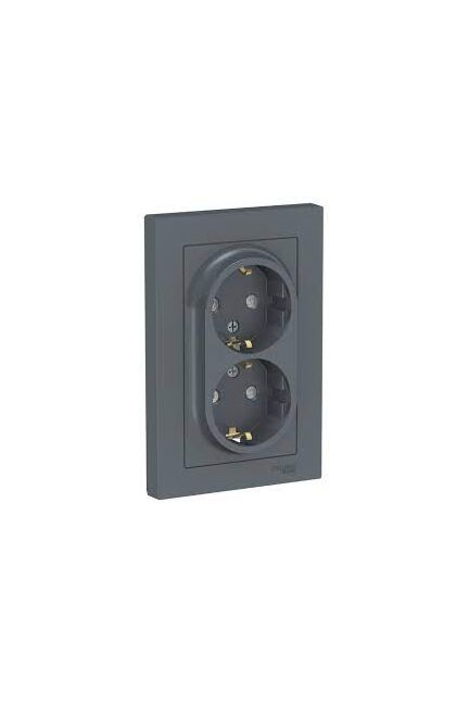 Розетка 2-постовая без з/к со шторками 16А моноблок, грифель AtlasDesign SE