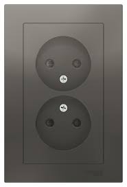 Розетка 2-постовая без з/к со шторками 16А моноблок, сталь AtlasDesign SE