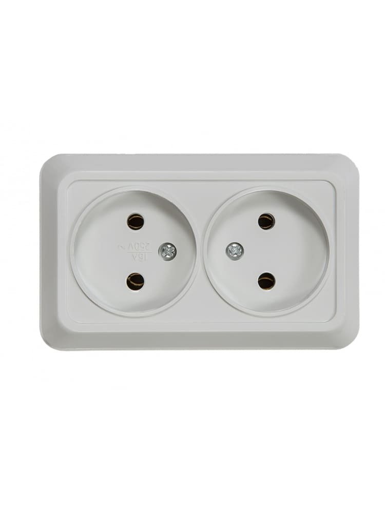 Накладная розетка на два поста для внутренней электропроводки, 16А, эффективный монтаж, прочный корпус, защита IP20, современный дизайн.