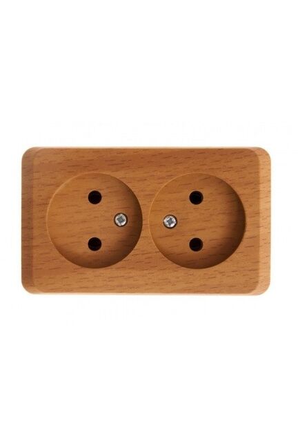 Двойная розетка 16А без заземления, износостойкий корпус бук, накладной монтаж — отличное решение для дома, офиса и мастерской.