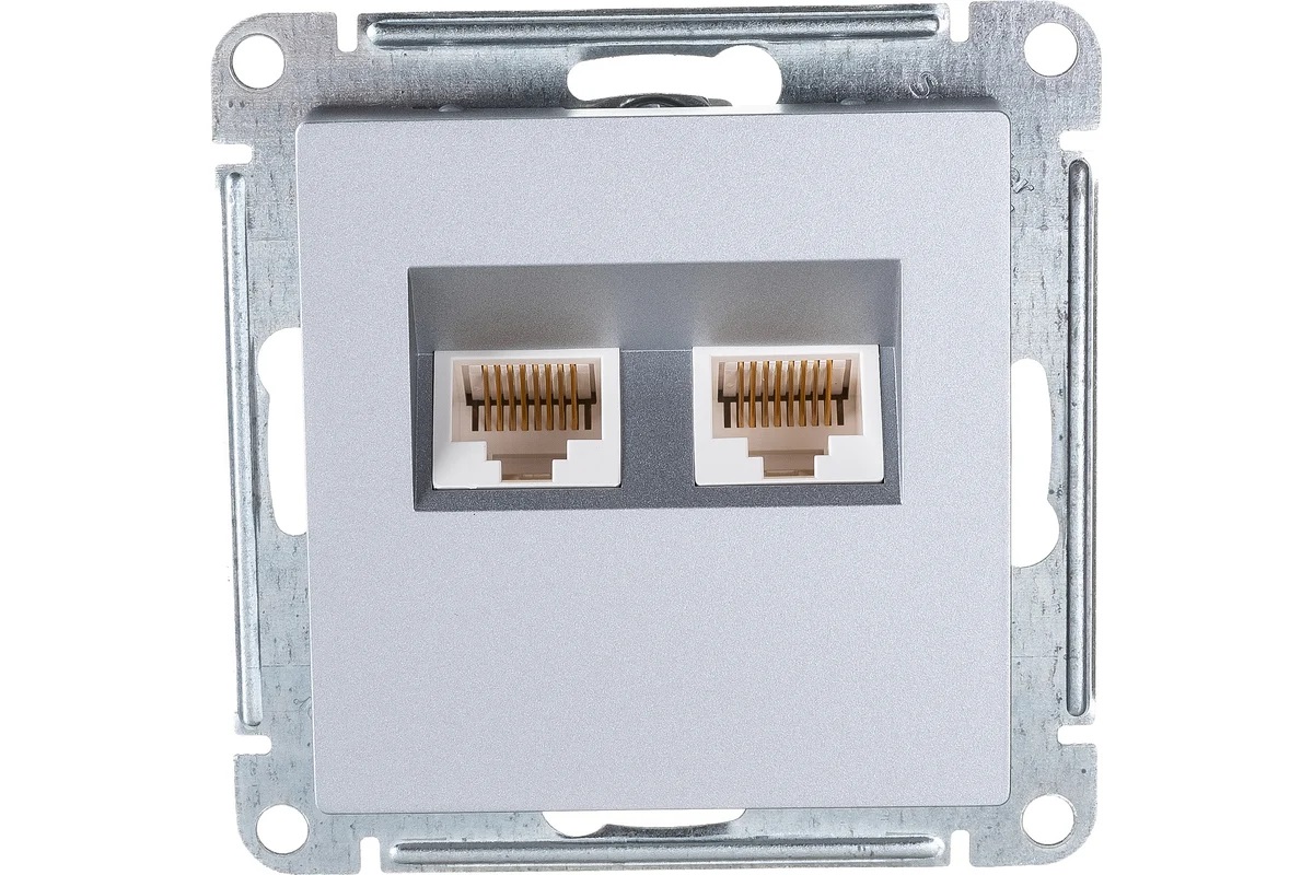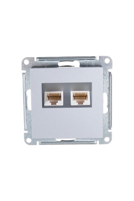 Розетка AtlasDesign двойная компьютерная RJ45+RJ45 информационная для локальных сетей 2-ая двухместная RJ45 UTP не экранированная категория 5e (5е), алюминиевого цвета предназначена для подключения интернета. Двойная сетевая розетка RJ45 с механизмом, алюминиевый корпус, для быстрого и надежного подключения компьютеров и техники в доме или офисе.