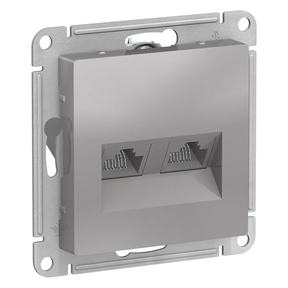 Розетка 2-постовая RJ45 (компьютерная) механизм, алюминий AtlasDesign SE