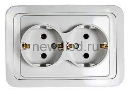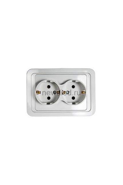Двойная розетка с заземлением для скрытой установки, подходит для дома и офиса, выдерживает до 16А, корпус из прочного пластика, белый цвет.