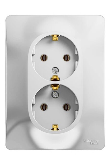 Двойная розетка с заземлением 16А, выдерживает высокие нагрузки, устойчива к износу и обеспечивает безопасное подключение техники.