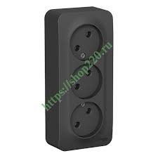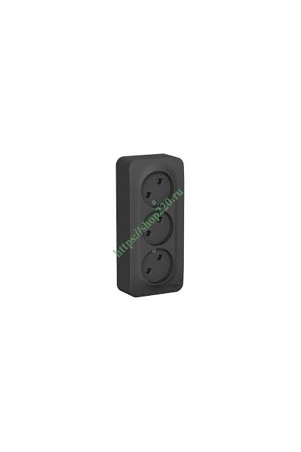 3-постовая розетка, накладной монтаж, изолирующая пластина, 16А, 250В, антрацит — безопасное решение для подключения сразу трёх устройств.