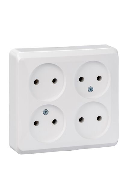 Четыре гнезда, накладной тип, 16А, без заземления. Идеальна для дома и мастерской — быстрое подключение техники, прочный корпус, стильный дизайн.