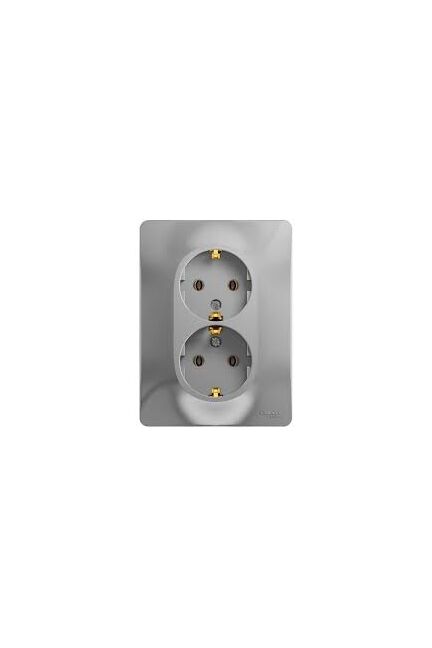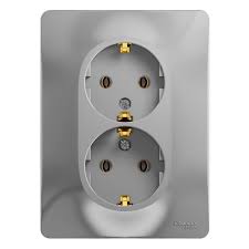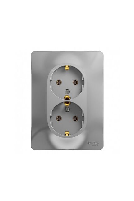 Двойная розетка с заземлением на 16А, алюминиевый цвет, безопасна для детей, подходит для мощных приборов и современного интерьера.