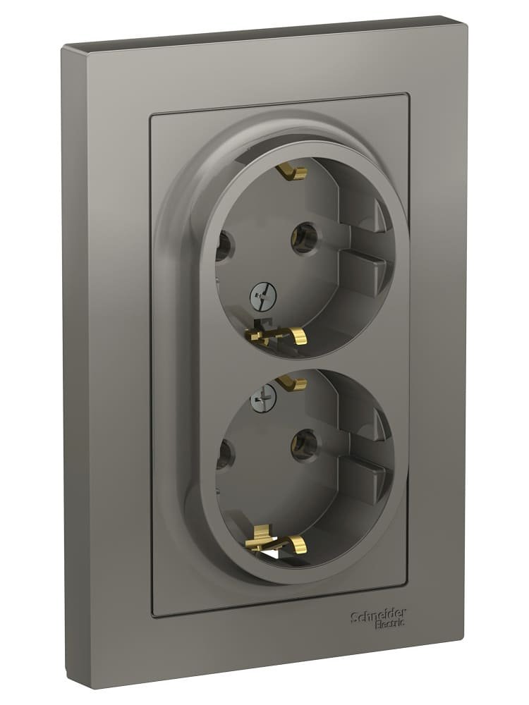 Розетка 2-постовая с з/к 16А моноблок, сталь AtlasDesign SE