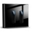 Двухклавишный проходной, управление с 2 точек, чёрный цвет, удобство для коридоров и лестниц, современный стиль, надёжность в эксплуатации.