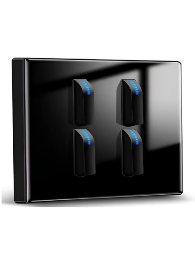 4-клавишный проходной переключатель для управления освещением с 4 точек, прочный корпус, стильный черный дизайн, удобство и надежность для вашего интерьера.