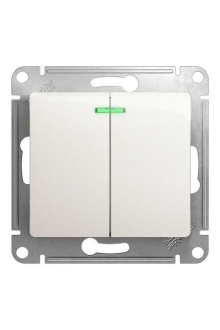 Выключатель 2-клавишный механизм, белый с подсветкой Glossa SE в Комсомольск-на-Амуре