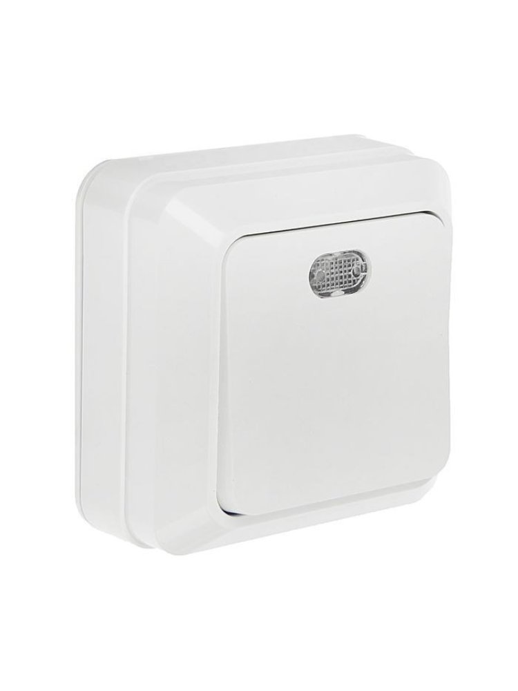 Накладной выключатель c подсветкой, белый, 10А, простой монтаж, надёжность, долговечность. Отлично подходит для жилых и офисных помещений.