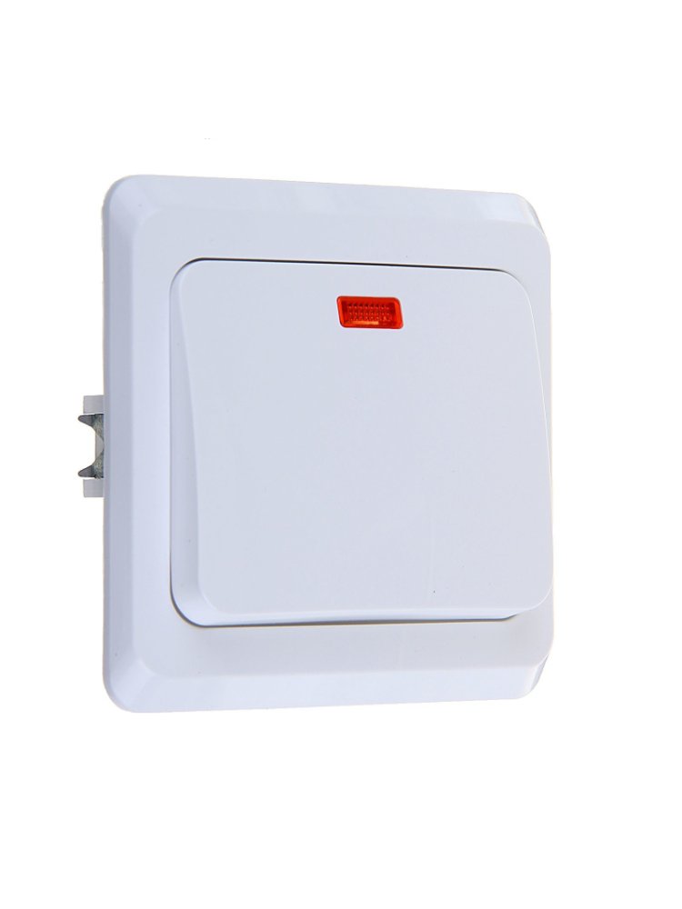 Одноклавишный выключатель с подсветкой, 10А, белый, легкая установка, подходит для любых интерьеров и обеспечивает комфортное управление светом.