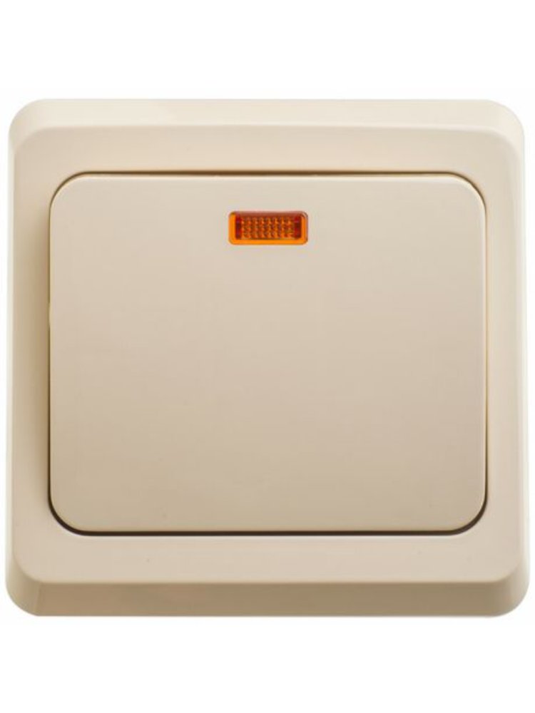 1-клавишный выключатель с подсветкой для скрытого монтажа, 10А, кремовый. Легкий поиск в темноте. Прочный пластик и современный дизайн.