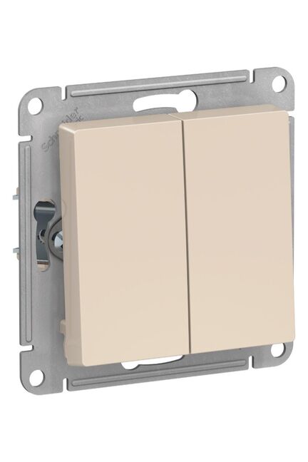 Элегантный двухклавишный выключатель бежевого цвета отлично подходит для современных квартир, домов и офисов, обеспечивая удобное управление освещением в двух зонах.